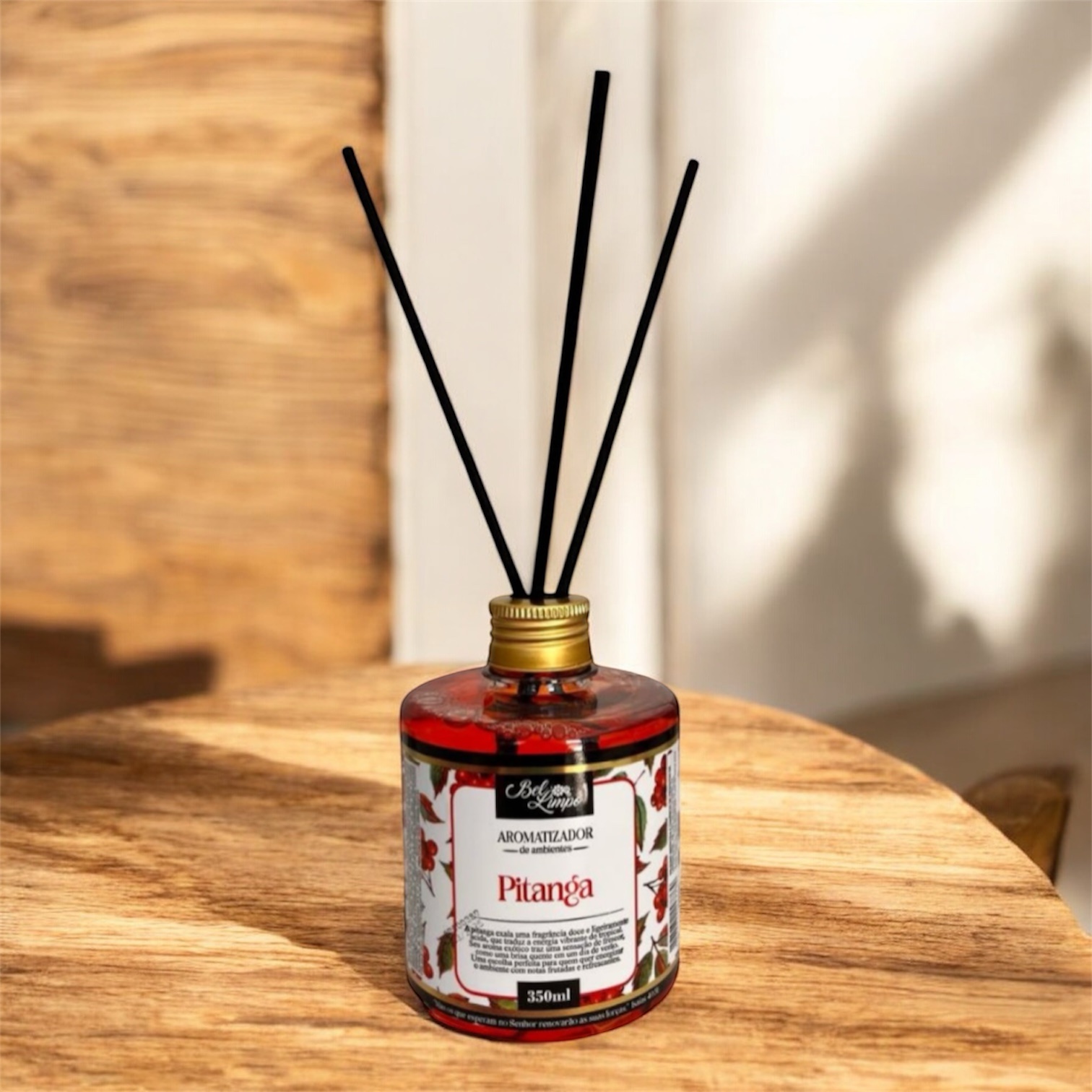 O Difusor de Varetas Pitanga 350ml , acompanha 3 varetas de fibra de algodão , oferece uma fragrância vibrante e frutada, com notas tropicais que trazem frescor e energia ao ambiente. Seu aroma doce e refrescante perfuma o espaço de forma contínua, criando uma atmosfera alegre e revigorante.