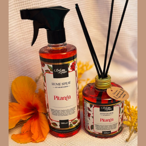 Transforme o ambiente da sua casa com o irresistível aroma da Pitanga! Este kit exclusivo combina um Home Spray e um Difusor de Varetas, proporcionando uma experiência olfativa única e envolvente. O Home Spray oferece uma fragrância fresca e doce, ideal para renovar o ar em qualquer cômodo, enquanto o Difusor de Varetas mantém o ambiente perfumado de forma constante e delicada.